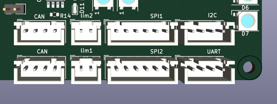 基板からはXHコネクタでCAN,UART,SPI,I2C,リミットスイッチ用の端子がそれぞれ2~1個ずつ出ています。