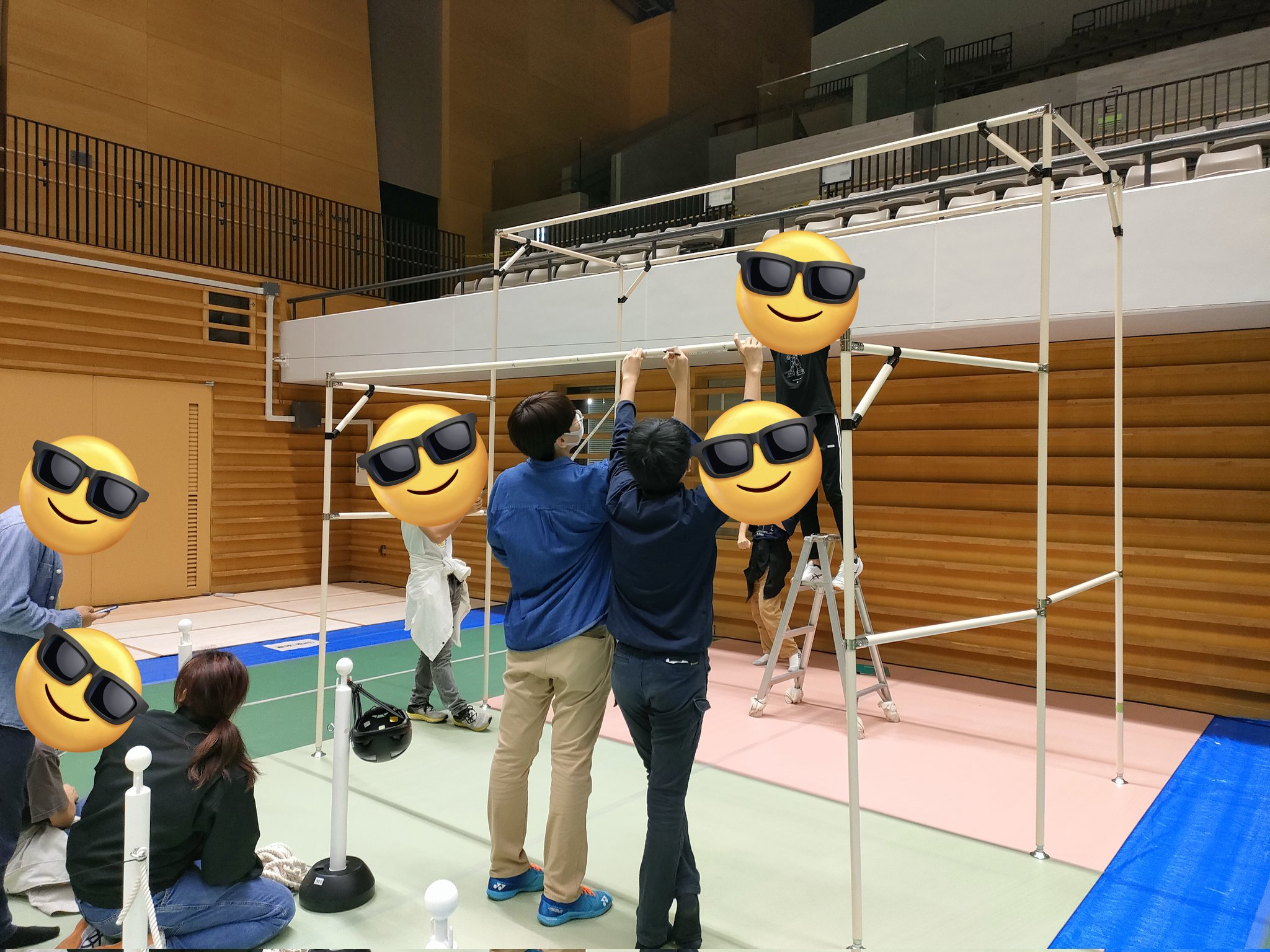 主幹校が回ってくること自体は2022年から聞いていたのでなんかするのかな~程度に考えていました。 6月頃に教員から連絡があり、運営補助学生の担当割り振りを決めることになりました。まずここで必要な人数の多さに驚きました。 ロボコンの運営は記録、計量計測、競技進行補助、ピット管理、試走場管理、対戦表管理など思っていた以上に細かく分かれています。 そこに補助学生が各部署2~14人ほどが割り当てられます。合計すると50人近く学生が必要な計算でした。 産技荒川ロボ研の人数はだいたい40人くらいで、ここから2チーム分の人員16人を引くと25人ほどしか残りません。 当然のように人数が足りないのでロボ研外の学生にも手伝いをお願いしました。 学生の割り振りについては各学生の得意不得意、集団作業のところは学生同士の相性も加味して動きやすいように決めました。特に計量計測等の知識が求められるところは5年生の先輩方にお願いし、トラブル対応などの可能性があるピット管理はコミュニケーション能力の高い学生を配置することにしました。 競技補助のような人数が多く、連携が必要な部署には 私がロボコン前にやったことはこれくらいです。 先生は100億倍くらい忙しそうでした。